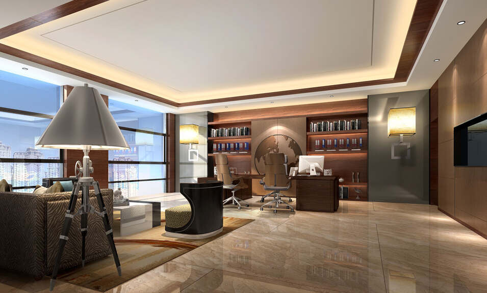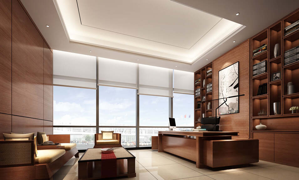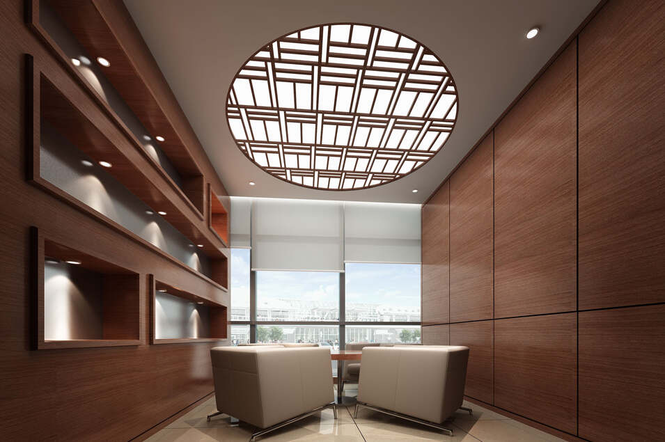 設(shè)計介紹:現(xiàn)代簡約凝重風(fēng)如何展現(xiàn)?設(shè)計師們運用棕色的色調(diào)表現(xiàn)出凝重感,頂部圓形中國風(fēng)網(wǎng)狀帶有悠久的中國藝術(shù),天圓地方設(shè)計,使人一進入到這個辦公室給人與專業(yè)、理性的感覺,這點特別符合公司的企業(yè)文化。